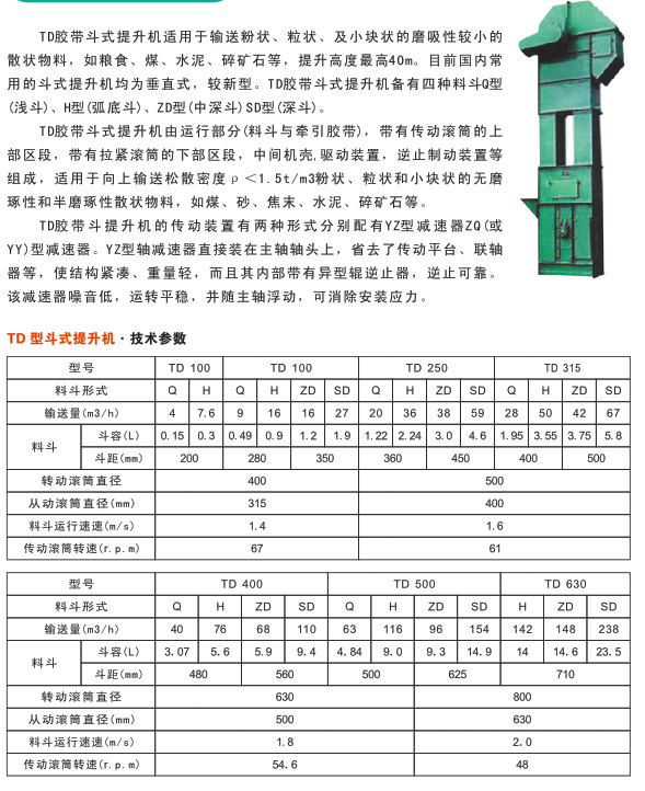 TD膠帶斗式提升機